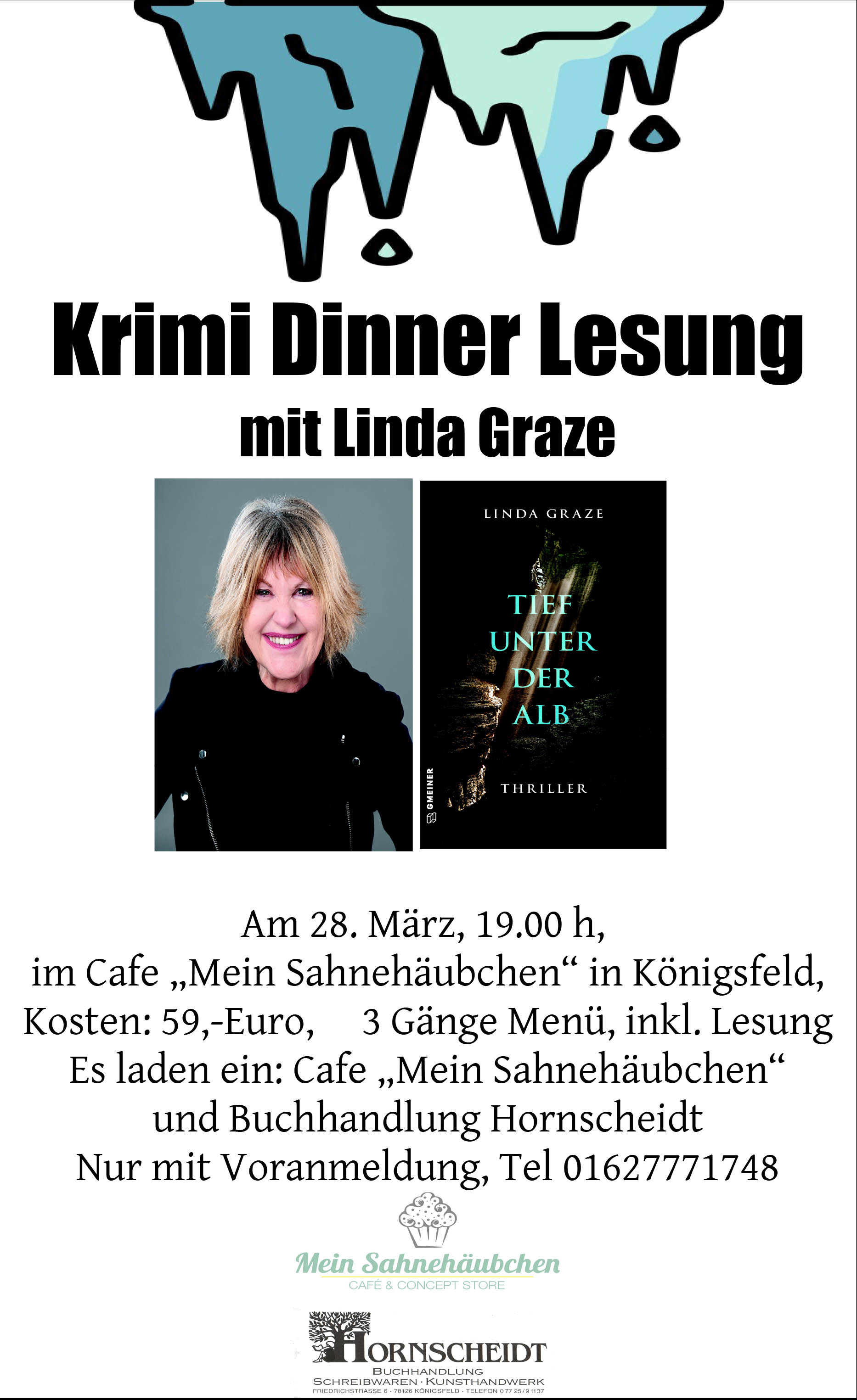 Schon das erste Krimidinner mit Herbert Noack war ein voller Erfolg. Die Buchhandlung Hornscheidt und das Cafe Sahnehäubchen laden erneut zum spannenden Krimidinner mit feinem 3-Gänge-Menü ins Cafe Sahnehäubchen ein.