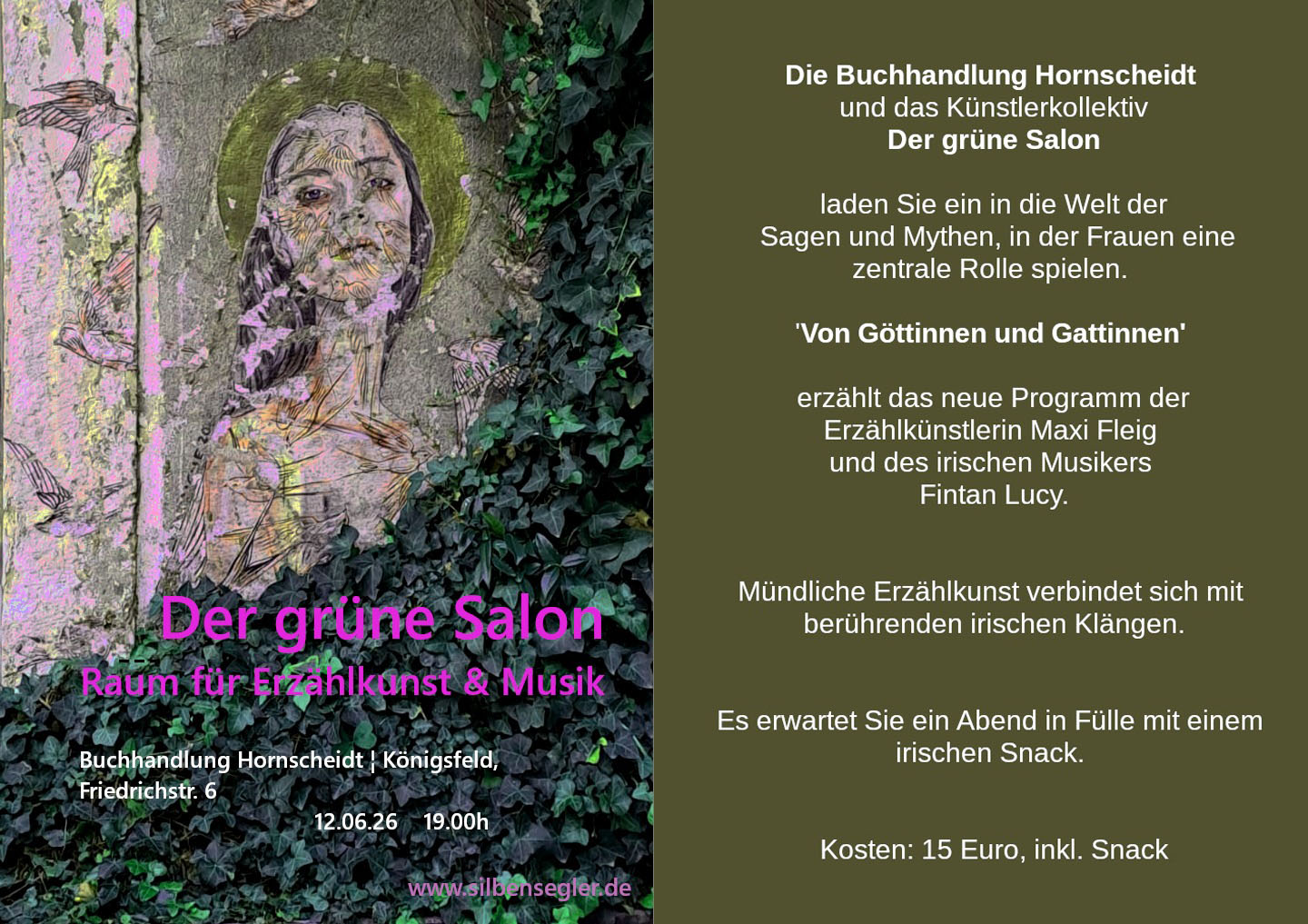 Die Buchhandlung Hornscheidt und das Künstlerkollektiv "Der grüne Salon" laden Sie ein in die Welt der Sagen und Mythen, in der Frauen eine zentrale Rolle spielen.